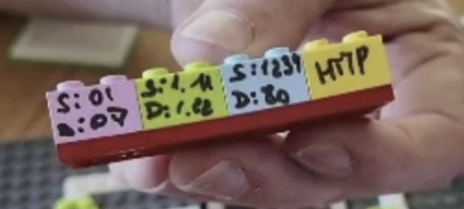 ARQ - Maître, pour sortir d’ici, il faut que le Serveur 2 réponde… Mon diagnostic montre quelques défaillances dans sa pile des 4 couches. Il faut préparer la trame de réponse. Posez chaque brique LEGO dans le bon ordre, et annotez-les, ou alors demandez à votre compagnon qui a le rôle serveur de s'en occuper.