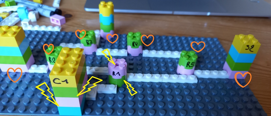 ARQ - Vérifiez la matérialisation légo, il faut que les couches soient respectées, de haut en bas (jaune – bleu – vert – rose).